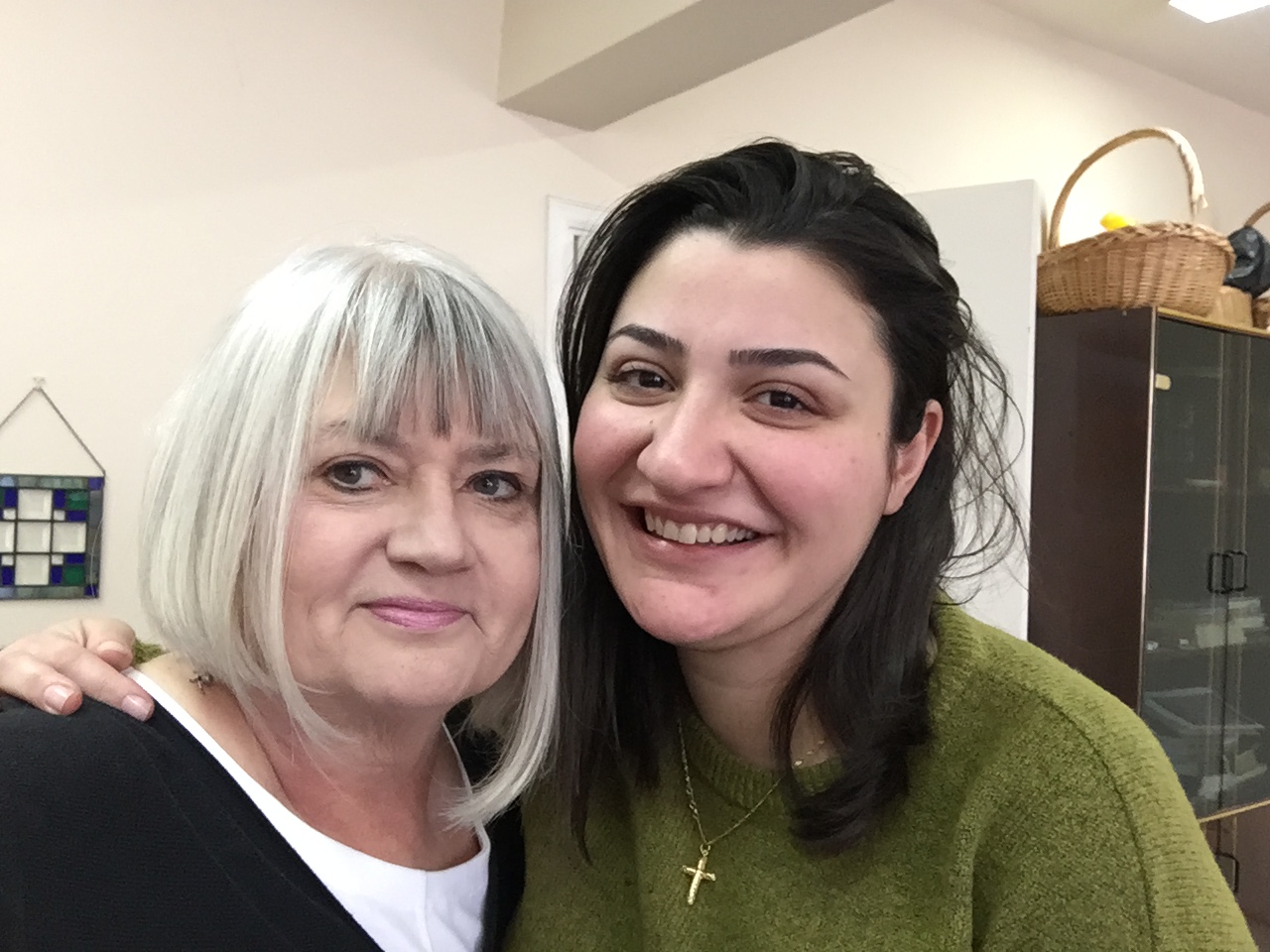 Amal (which means hope) sits with Marilyn on the terrace. Amal is from Sweida, the town that lost over 200 in a terrorist attack on Wednesday.